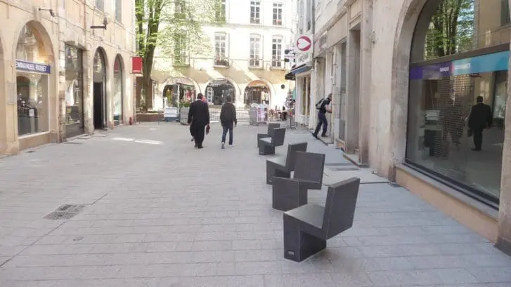 Réaménagement des rues piétonnes dans le centre ancien de la ville. Reprise des surfaces minérales en granit des Vosges. Gestion de la circulation. Mise en place de mobiliers, chaises, structures de plantes grimpantes, fontaines. Reprise des réseaux. Equipe Mayot & Toussaint paysagistes /// Hervé Regnault architecte /// Merlin VRD /// […]