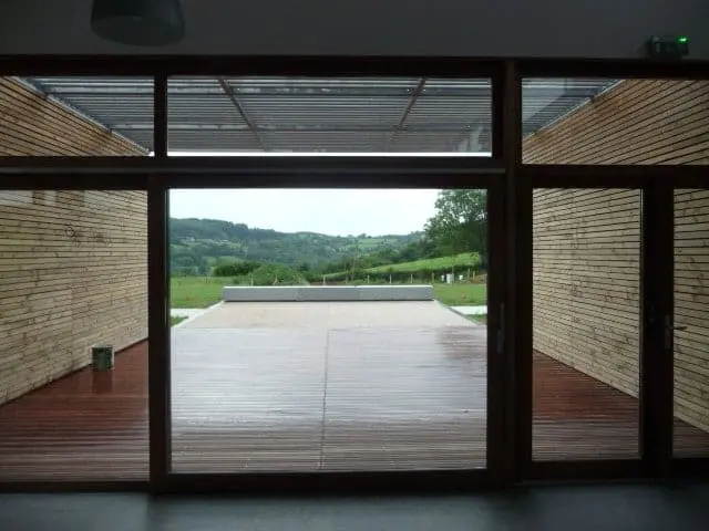 Le projet est sobre dans une écriture minimaliste et des matériaux simples: bois, béton, pierre et verre.