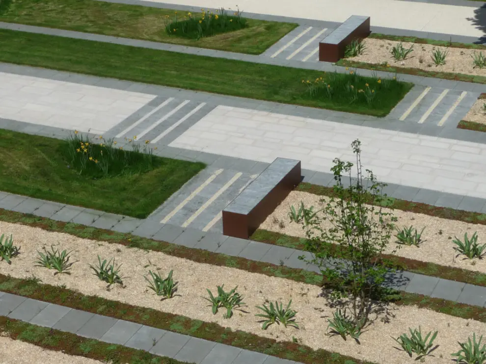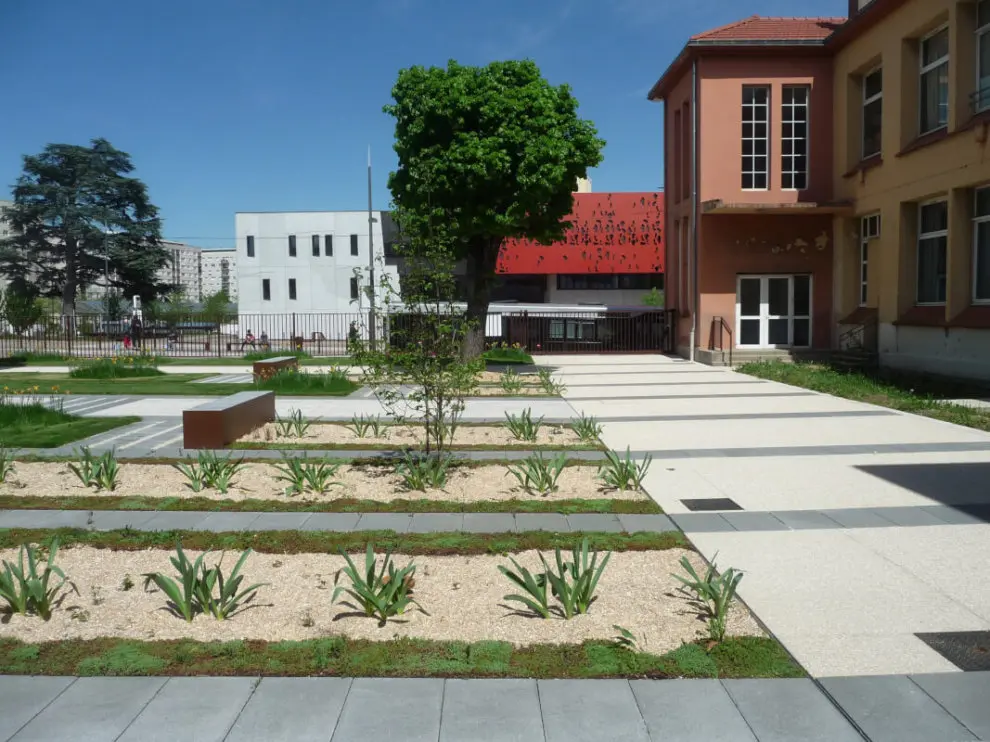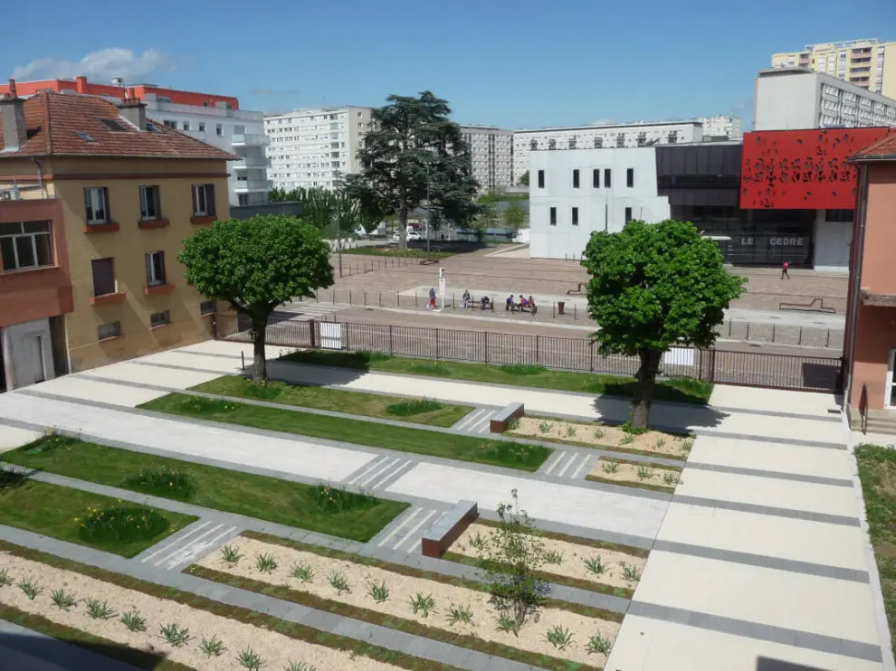 Maîtrise d’œuvre pour la création de l’ensemble des espaces publics de l’Hôtel de ville de Chenôve : la place Pierre Meunier et la cour d’honneur orientée sur la place du Cèdre (jardin patio de floraisons blanches en écho à la future salle des mariages).