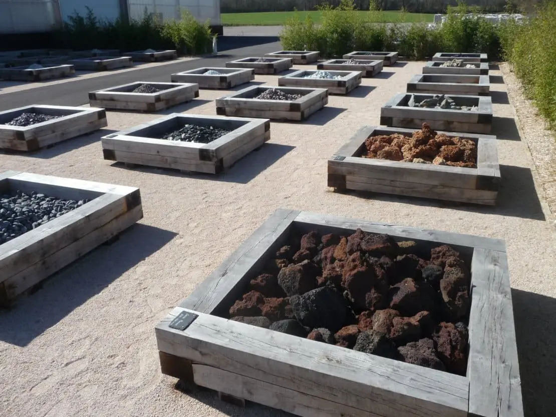Aménagement du show room de l’entreprise Pierre Mureuse de Bourgogne, spécialisée en pierres pour jardins et aménagements paysagers.