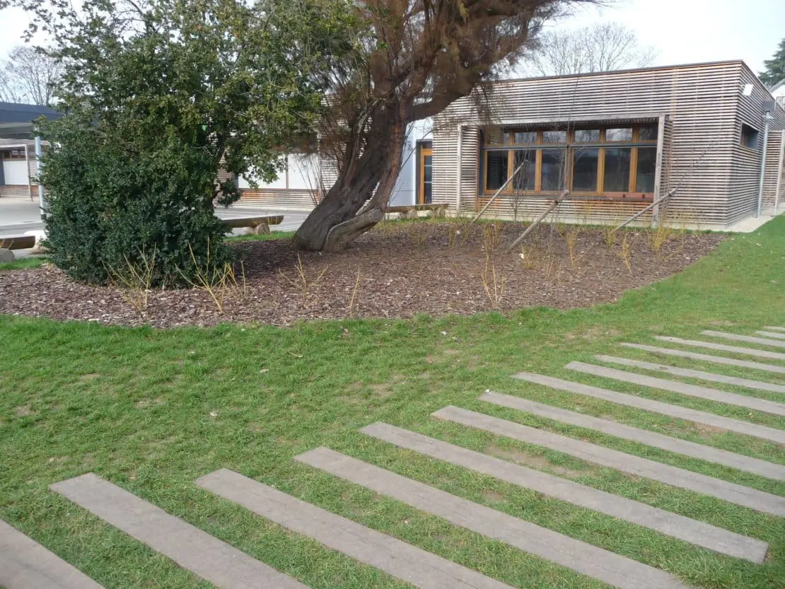 Aménagement des cours d’école primaire et maternelle, espace de loisirs, patios, arboretum.