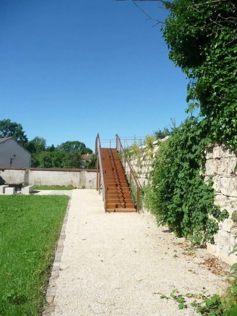 Ce projet fait le lien entre plusieurs jardins achetés par la ville. Première découverte par le verger où des variétés anciennes ont été conservées. Deuxième séquence par les remparts enjambés par un escalier belvédère en acier corten offrant un nouveau regard sur le paysage. La visite se termine par le vivier, bras de rivière de la Bèze qui rentre dans le jardin. Ce projet réuni en un même point un lieu de bien être, de détente, un lieu où les sens sont en éveil, un lieu de nature et de biodiversité, un lieu qui valorise le tourisme, le patrimoine et l’histoire.
